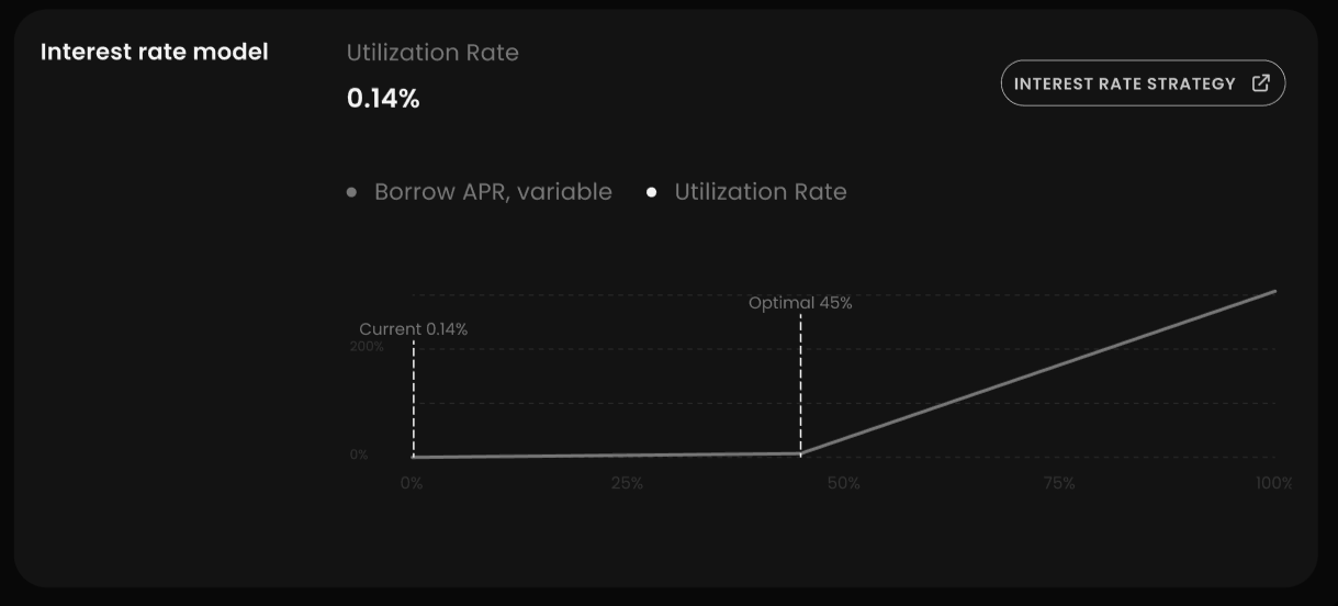 This means that up-until an optimal utilization rate interest rates increase non-linearly (read: small) curve until a sub-optimal utilization rate is reached, during which the interest rate raises sharply to accommodate more optimal supply and demand.